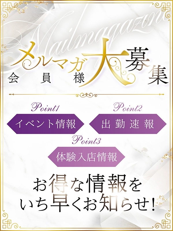 【最新&お得な情報をお手元に!】 ◆メルマガ会員大募集◆メルマガ会員のお客様へ大特価でのご案内♪まだのお客様は、この機会に是非ご登録くださいませ!!(※当日登録からの即時、特典使用可!)メルマガにご登録頂いたお客様は【合言葉】を確認のお電話の際にお伝え頂ければ90分以上コースで+10分ご延長のサービスさらにさらに!1,000円割引も付けられちゃう!メルマガご登録でお得な情報が!!↓↓↓↓↓↓↓↓↓↓↓↓↓https://www.hips-ju.com/mailmagazine.htmlそう!!全ての始まりはメルマガから!いつも、当店を支えて下さっている、会員様に最大限還元させて頂きます!!ちなみに、、、、メルマガ会員様は、、、、、『絶対お得になります』!!通常のお客様より、断然オトク♪特典絶対付与!!宣言!!もちろん「奥さんにバレそう・・」「利用機会がなくなった・・」など都合悪くなったらいつでも購読解除可!!新人情報や、その他お得情報も会員様にはいち早くお知らせいたします!